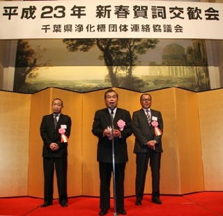 (社)千葉県浄化槽協会(文違義雄理事長)、(社)千葉県環境保全センター(石井栄理事長)、(社)千葉県浄化槽検査センター(安部陸理事長)の「千葉県浄化槽団体連絡協議会」による2011年新春賀詞交歓会が20日、千葉市内のオークラ千葉ホテルで開かれ、関係者230人余が出席した。