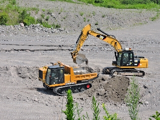 現在は、『雲仙管内土砂掘削運搬その他工事』を手掛けている葛g川組が、警戒区域内である赤松谷川1号床固工上流部(面積約2500平方b)の除石(数量約5000立方b)を遠隔操作で施工中。無人化での施工期間は、7月中旬〜8月中旬としている。使用機械は、遠隔操作式バックホウ(0・8立方b級)、遠隔操作式不整地運搬車(11d級)、遠隔操作式カメラ車(バックホウ0・4立方b級)。